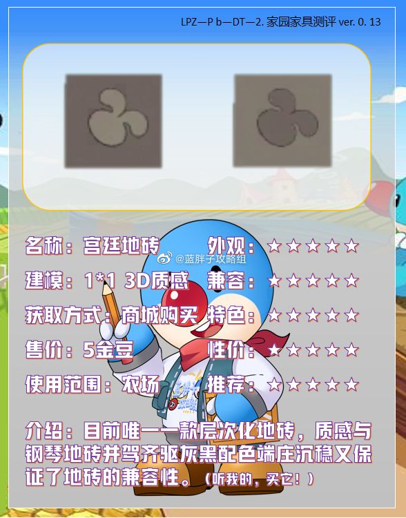 注:本次家园家具测评栏目仅代表蓝胖子制作成员的看法,可能会存在玩家有不同观点的现象,仅供参考