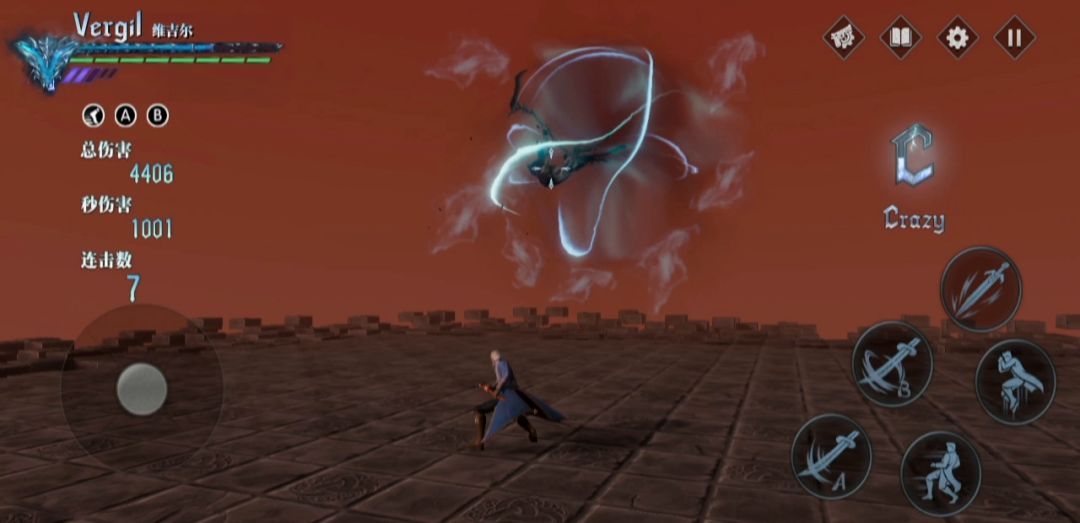 冲刺+长按A+长按B+冲刺+C+长按冲刺+AAC+长按B(一直按到落地后,刀闪光瞬间松手)+长按C(等怪掉下来,有学嘲讽技能这时候可以加个嘲讽)+AAA(之后稍作停顿,等到维吉尔拔剑)+A(维吉尔连砍的时候这,我习惯多按几下A比较顺手,最后一下A长按至刀闪光瞬间松手)