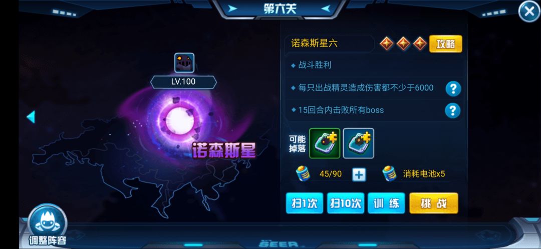 6.伊特诺星:109以下技能无效、不能强化且只能用克制系精灵打,我这边是用魔焰的150大打到魔焰被击败,然后上古尔扎迪80后手威力翻倍打到被击败,最后换卡修斯用乾坤反转打死。这边建议先用训练看一下伤害是多少,别最后差一点伤害先把强化给偷了然后被boss给消强。