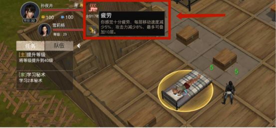 死亡笔记:当血量降至0玩家将倒地不起,进入濒死状态。此时玩家可以选择使用道具【玄都宝玉】原地复活继续当前任务。也可以选择回家暂避,玩家将回到家园满血复活,但是会附加一层持续10分钟的疲劳状态,移动速度减少5%,攻击力减少8%,此状态最多可以叠加10层