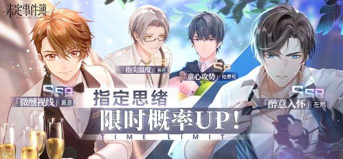活动期间,轮替女神之影中,夏彦SSR【微醺视线】、左然SSR【醉意入怀】、莫弈SR【指尖温度】、陆景和SR【童心攻势】获得概率提升
