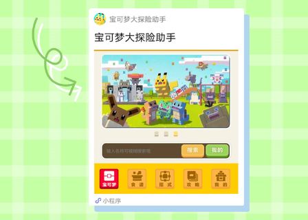 2."料理"食谱:不同的食谱可以吸引不同的宝可梦,可通过微信小程序“宝可梦大探险助手”查阅食谱攻略,越美味的食谱吸引到的宝可梦越稀有哦~