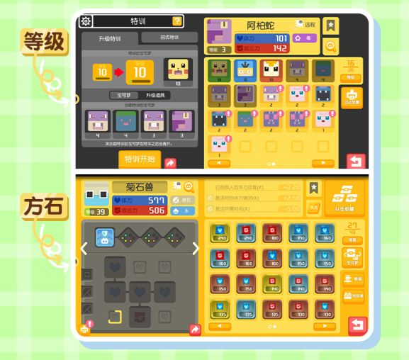 1.强化玩法的功能:进行宝可梦的强度(等级、招式)特训和装备(方石)锻造,可实现战力提升,从而组建阵容,更好地对战和参加活动。