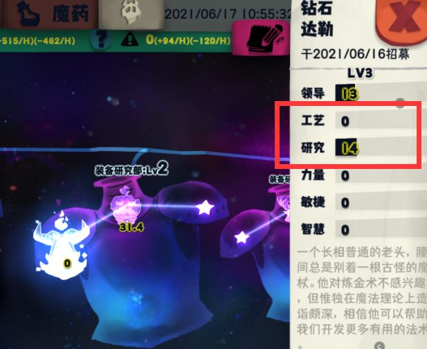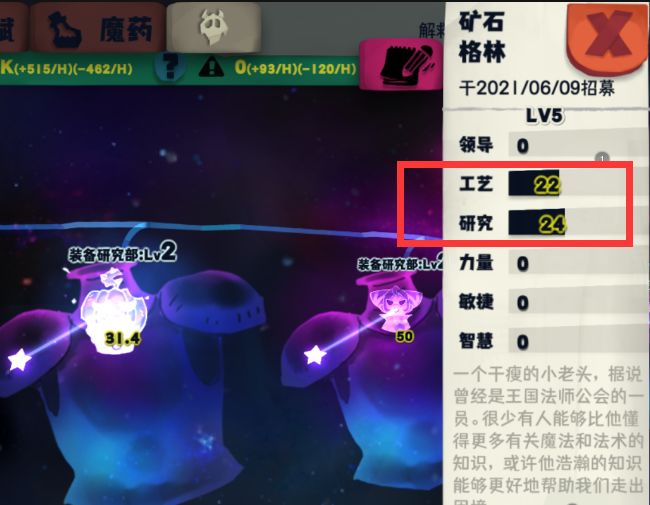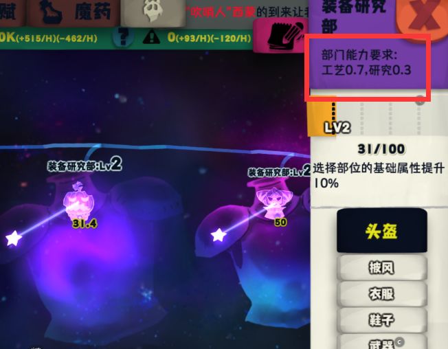 装备部——必备属性:工艺21+,研究9+,目前主流,大佬的根本,多个部门数值可叠加;