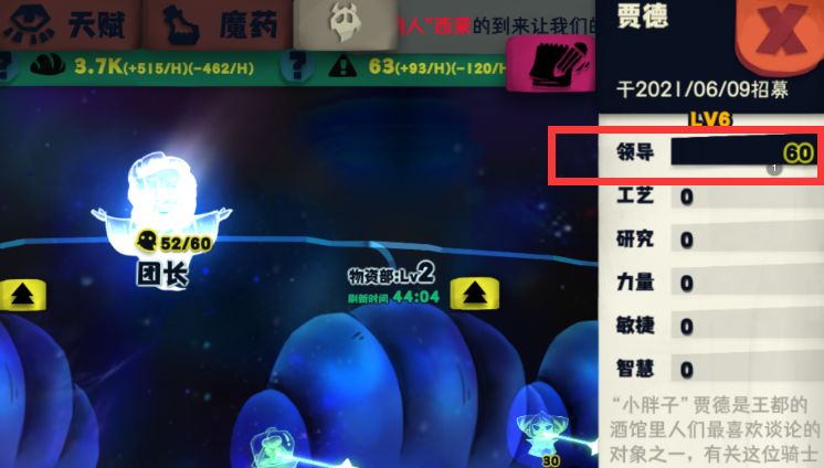 三、物资到200(200物资才能建)时抓一个高领导的打工仔B丢进工作区做团长,以后侦查部、训练部、调和部、角斗士、刺客等全部放在这里。抓一个领导、研究双属性打工仔下面建侦查部;