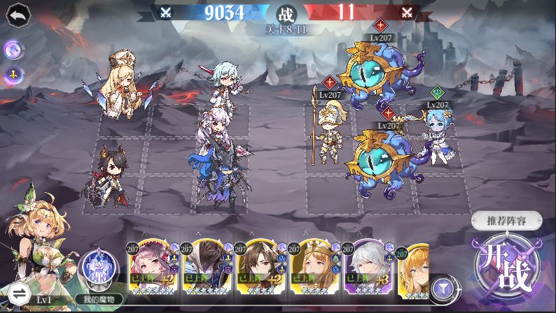 在阵容排布上,艾可、安比亚、维克切3位战士负责在前排分摊伤害,并利用吸血减轻奶妈压力;白银卿、亚斯塔罗特退居后排,进行掩护与支援,提供防御buff增强前排战士换血的效率,并为安比亚的奥义提供巨额伤害。