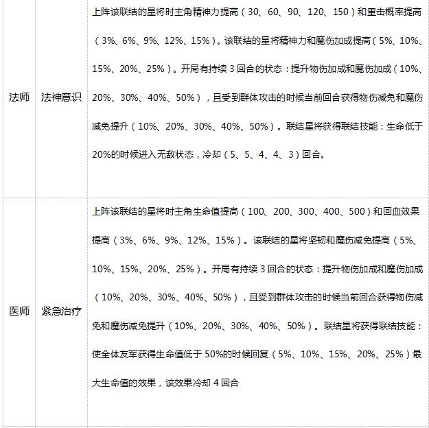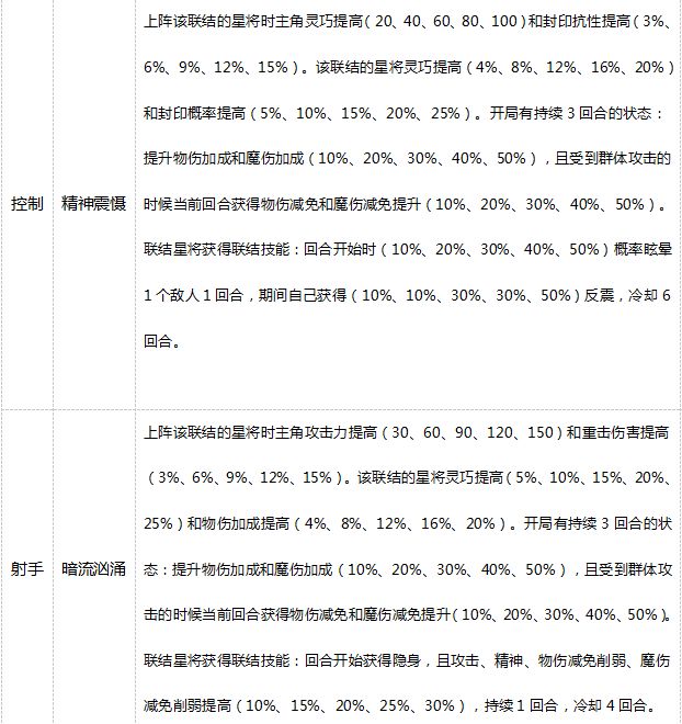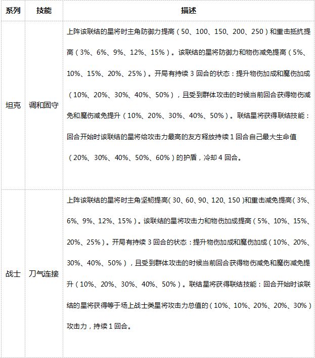 而技能效果只要对应联结里的星将其中一个上阵即可享受加成,具体技能效果如下: