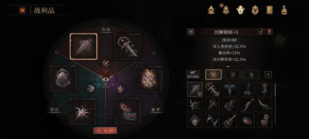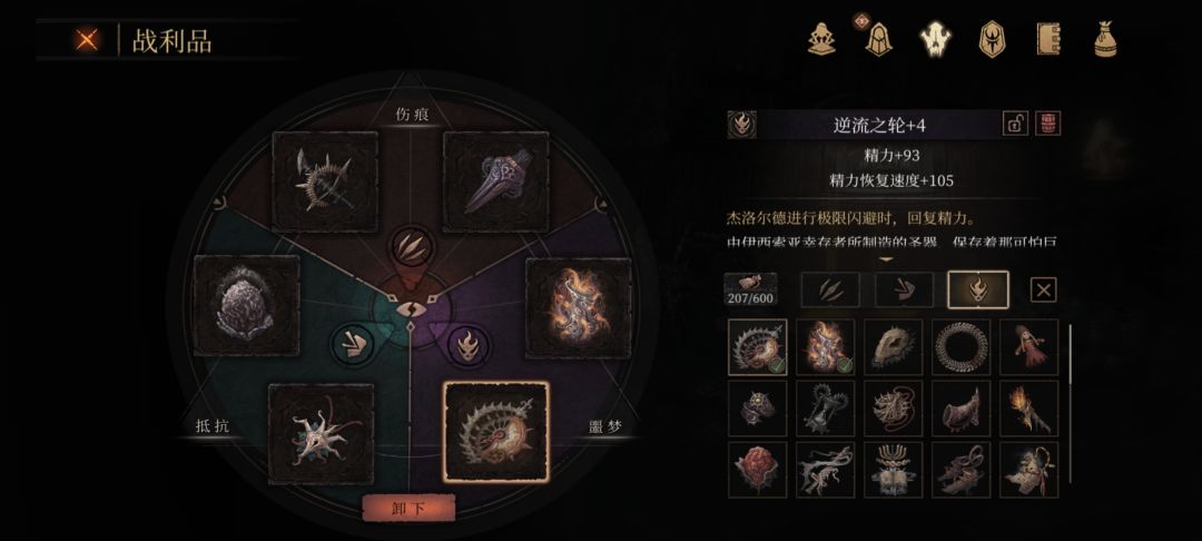 享德尔,夜之拥重铸暴伤和银桩重铸污秽就是暴击暴伤那个好的问题了(夜之拥放水后在第一个红胖下去开箱拿),混沌环加血加精力慎勇强推,小龙人断尾会得兽鳞收藏党可以打一下。