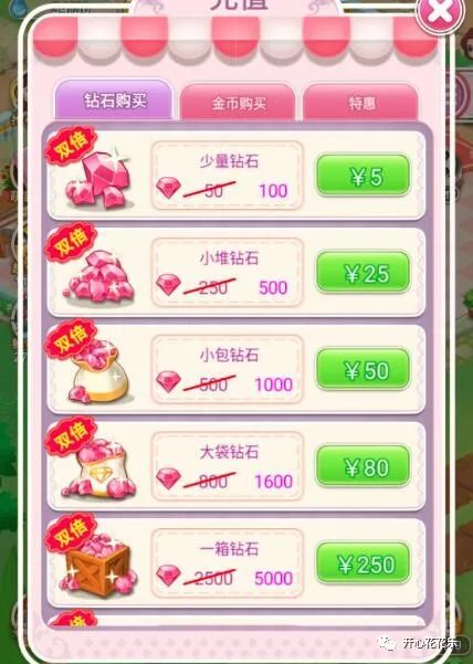 4.充值,方法简单有效,土豪玩家专属,海量钻石即可拥有。总的来说呢,对于一般玩家们最实用的方法就是完成鲜花订单里面的任务,虽然每次获得钻石数量不等,但是日积月累还是很可观的一笔钻石收入,所以各位小可爱们一定不要忘记完成鲜花订单哦!