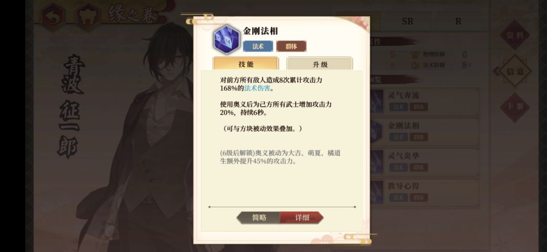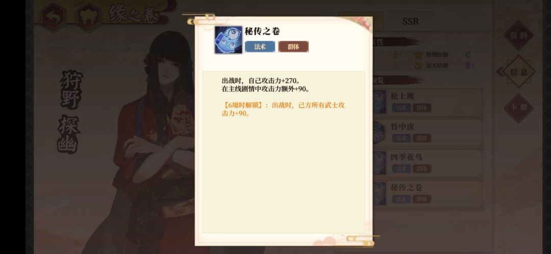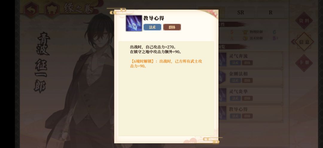推荐理由:消块就能为同伴增加伤害的后排法术攻击辅助型武士,能持续为队友加伤害是他的最大特点,再满花、满奥义之后,可以为队友提供高达65%的伤害加成,可以说是非常恐怖,他的奥义会减少敌人法抗,法甲。