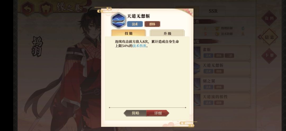 推荐理由:能于绝境中反杀敌人的前排群体法术攻击型武士,他的血量低于30%时,会触发被动,增加他的法术伤害,再配合上武器残心剑质和奥义,可以打出巨量伤害的同时回复自身生命,兼顾伤害的同时,增加续航能力。被动一出,奥义一开,又满血了。