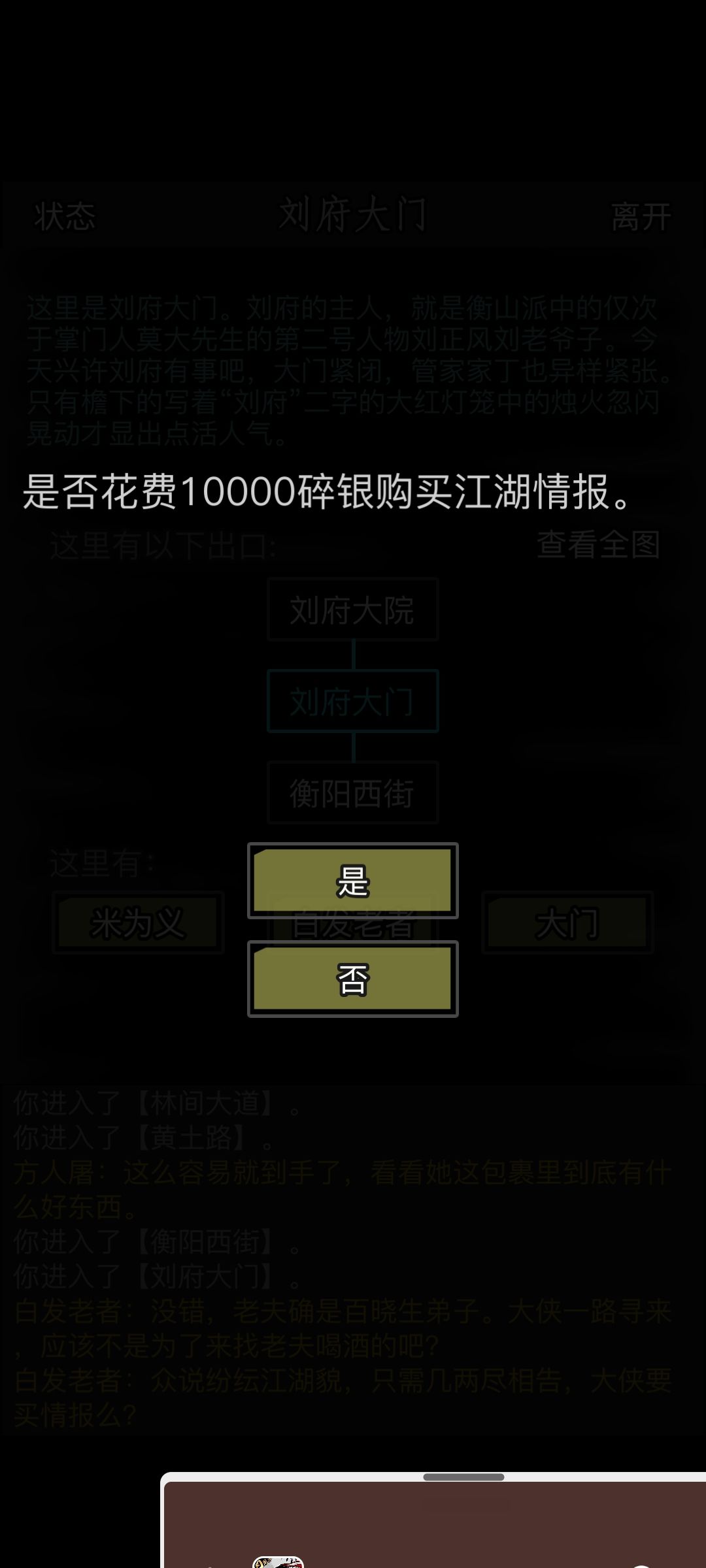 3. 江湖传言分为江湖情报和江湖秘辛,大侠们可在江湖情报处付给徐书生碎银或银票,购今日的江湖情报,并有机会获得江湖秘辛;