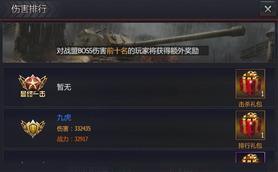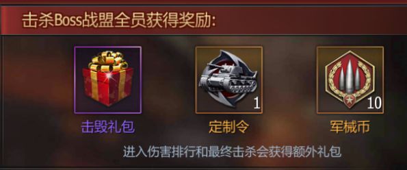 击杀BOSS后全员还能获得击毁礼包、定制令、军械币等道具,利用这些道具可以对于坦克进行有效的提升。