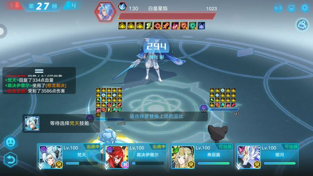 比较平民且需要亿点运气的打法,开局集火银河3-4回合秒掉她(三回合最好)梵天用第一个特性的大招主要是用木技能打若若离然后连击暗系让她少回血,6-7回合内干掉她且132梵天不死。就剩一个的时候梵天能抗住就用第三个特性的大招给132加buff扛不住就加盾。