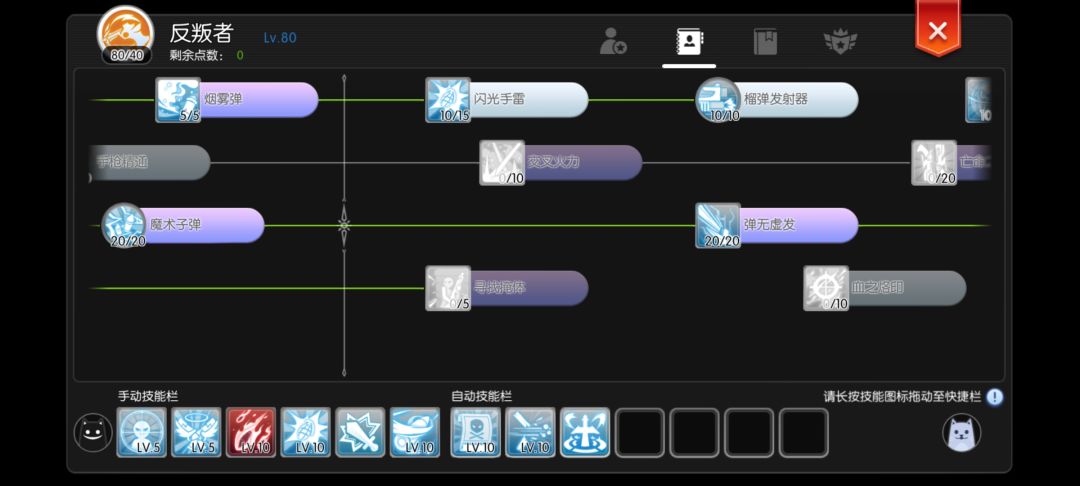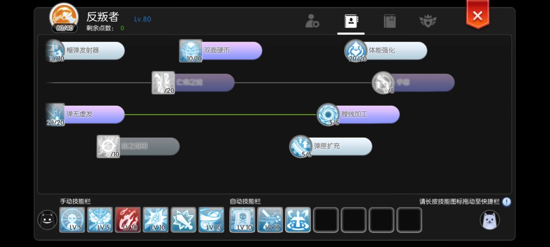 ★技能注意换弹技能千万别放备战(这个技能也很有意思,可以放备战但是不能放自动技能栏,不解释,你们自己试试就知道了)