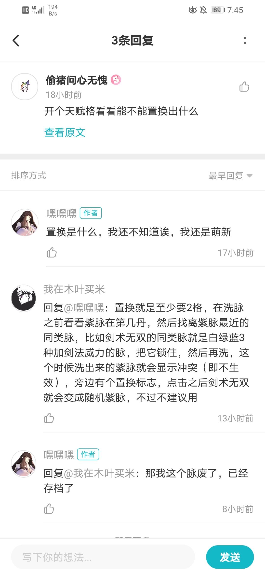 到了晚上没上tap上认真看评论就是怒冲100,第一次冲给了有2100多元宝直接进商城买资质丹开弟二个格子,没洗髓丹怎么办?买!就是这么豪横。直接把紫脉洗出来锁定,怕丢了我tm还点了保存,然后洗出一个白剑脉就发现不对劲了,就白的那个脉出了个感叹号紫脉不能换![[嗒啦啦2_惊了]](https://img.tapimg.com/market/images/7dd82ea5d769e457891034f60f4a5717.gif)