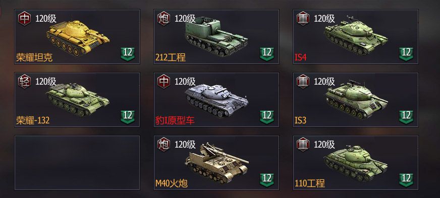 肉盾系列:IS3-IS4-110是一套完美组合,配合黄金59,铜墙铁壁,非常肉,阵型中除WZ120需要活动之外其他坦克均能有机会弄到。