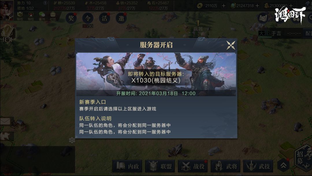 在备战区中,主公可根据系统公布的开服计划,选择报名参与的赛季剧本。报名成功后,角色将会从备战区中转入到目标赛季,此后可从目标赛季的服务器进入游戏。