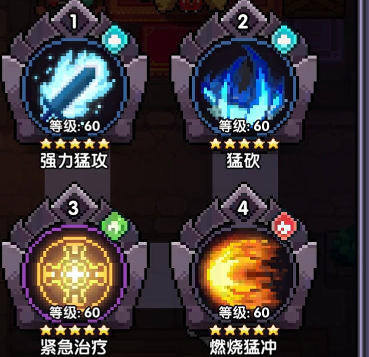 猛砍和猛冲主要是加移速或位移的,提高了刷图效率。猛攻加伤害的,强度最高。紧急治疗防暴毙。