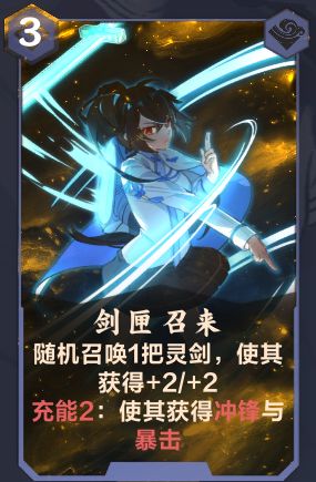 ·充能:先下的卡会先充能,例:7费使用飞翼掠击+剑匣召来,共计5点灵力余2点,但飞翼掠击会先充能1导致剑匣召来的充能2失效,失去暴击冲锋效果。
