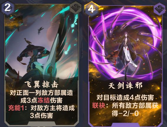 ·没什么好说的,水的卡大多数都需要联袂。需要注意的是,在2费或3费的时候如果没有合适的牌是可以用开启剑匣和冰心斩月作为首卡进行联袂的,虽然这两张卡也具有相应的联袂效果。注:冰心斩月召唤的飞剑只有在作为第二张卡的时候才有相应的封印/飞行效果。