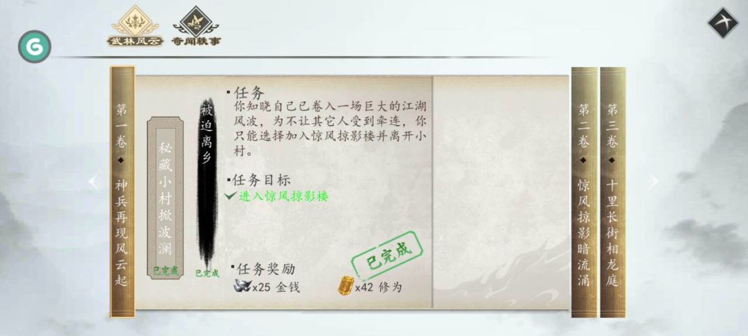 没更新前玩的惊风线,玩到第二卷,去蓉城来福客栈,我先到蓉城各个房间搜刮物资,无意碰到一个推箱子游戏。完成后出来一个不认识的女的,从此走向了卷雪主线。。。