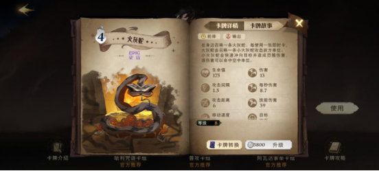 哈利的回响。其实纯低费的输出型即时卡是肯定不成体系的,所以我们只需要带4张左右的输出型即时卡,然后再去搭配一些能与它们联动起来的卡牌,并以此为核心。像是【火灰蛇】这张驻场卡基本就是低费即时卡组的不变核心了,能配合低费的即时魔法打出持续的AOE伤害。其次就是【三头犬宝宝】,也能从快速消耗的即时魔法中受益,不过其作用只能在后期发挥了,因此前期会比较卡手,只能算是关键卡,大家可以根据自己的战斗节奏进行替换。