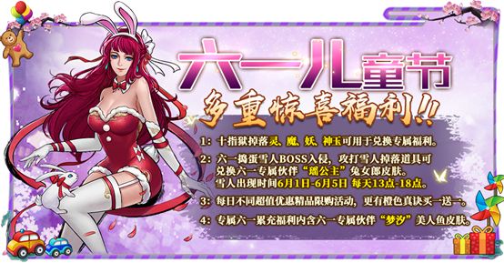 注意:攻击BOSS所需的【六一糖果】物品,可参与儿童节节活动中的”登录福利“、“在线福利”与“仙/神石兑换”活动来领取,每日都有机会得到哦~