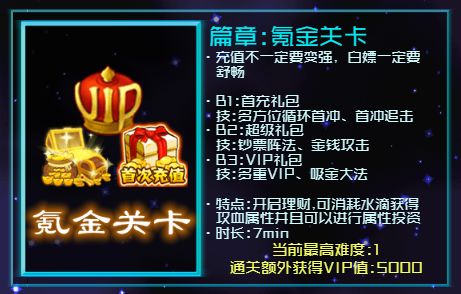 VIP的提升完全靠打"氪金关卡"和使用游戏内货币进行购买,如这个说明中所叙述的那样,不能靠充值提升、不能靠看广告提升...