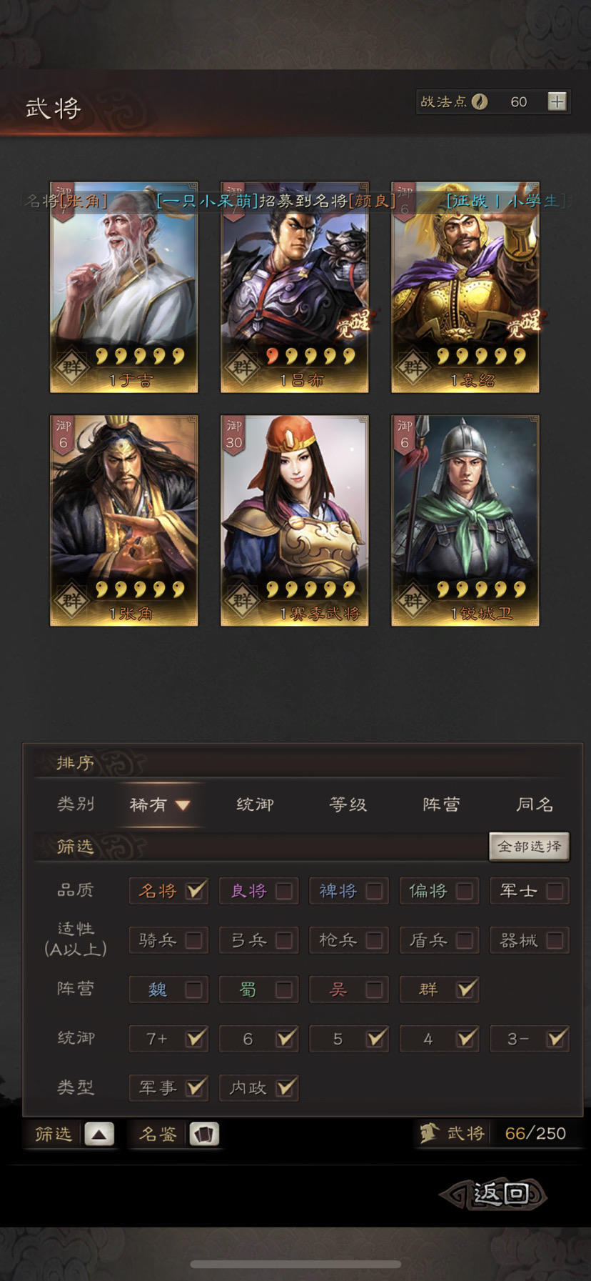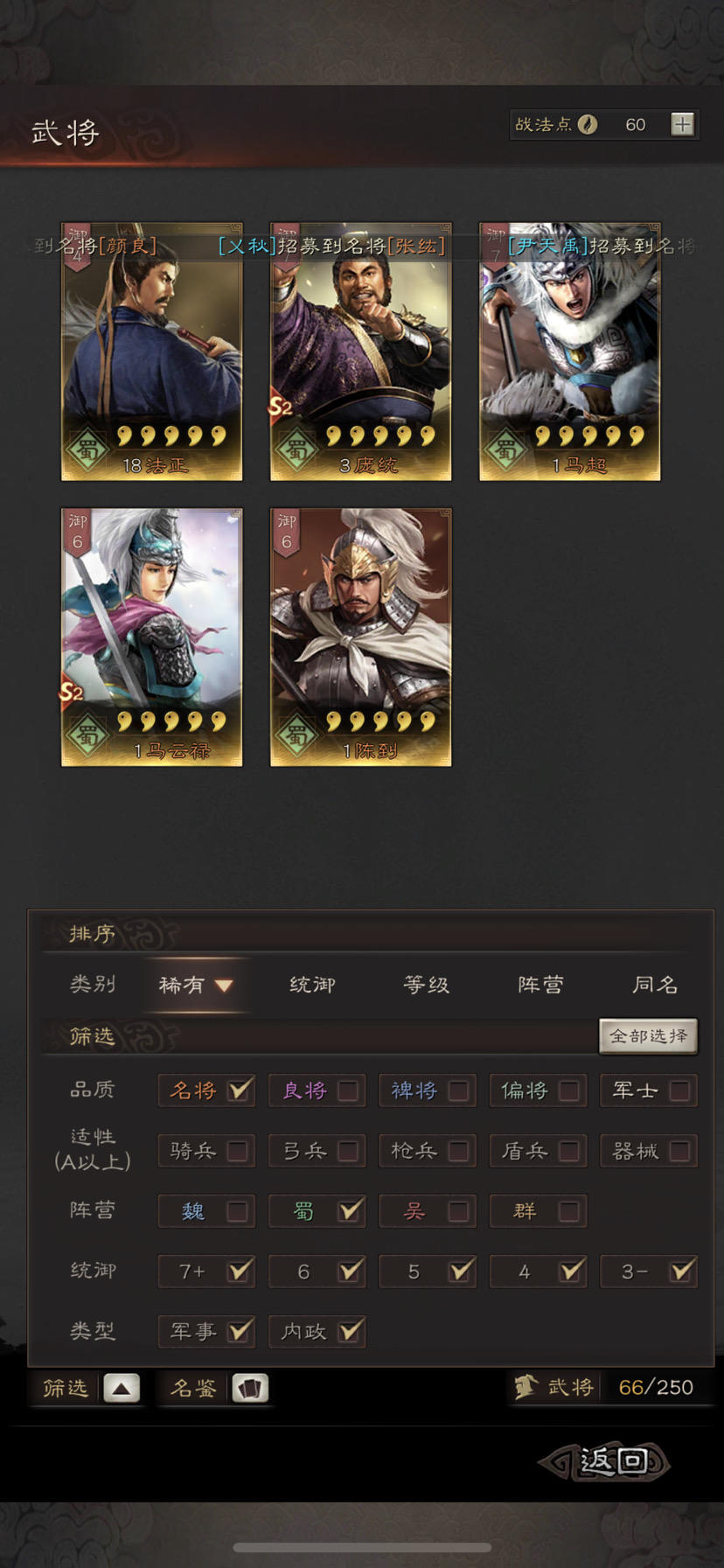 目前S2刚开区,霸业抽了庞统和香香,A级战法全,S的就只有八门,夺魄,无当。觉醒材料还有个田丰不知道能组吗?麻烦大佬们帮配下