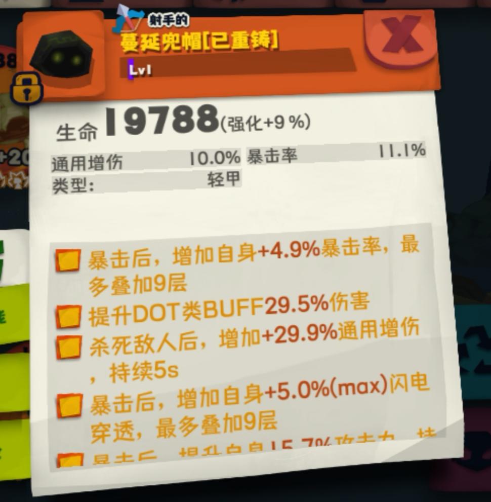 帽子,肝了一天,词条也没洗很好,玩木偶的转这个也就需要个帽子,当然压血都做好的,就没啥必要,做出来也就是玩玩了