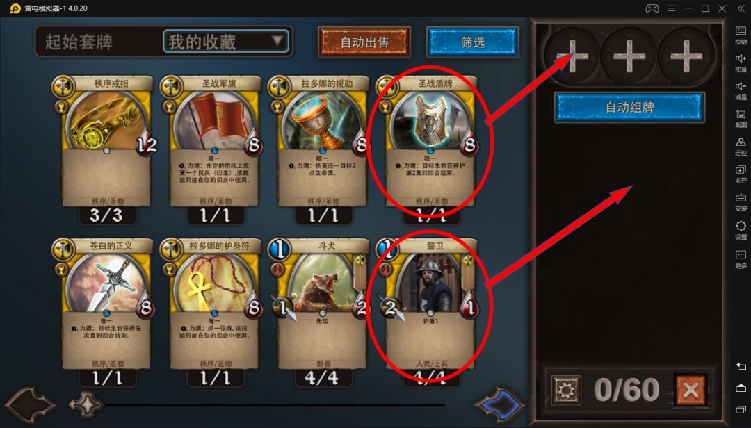 组建套牌的时候建议先筛选圣物,将你需要的3个圣物拖入右上角,然后再放入卡牌,这样不容易乱。