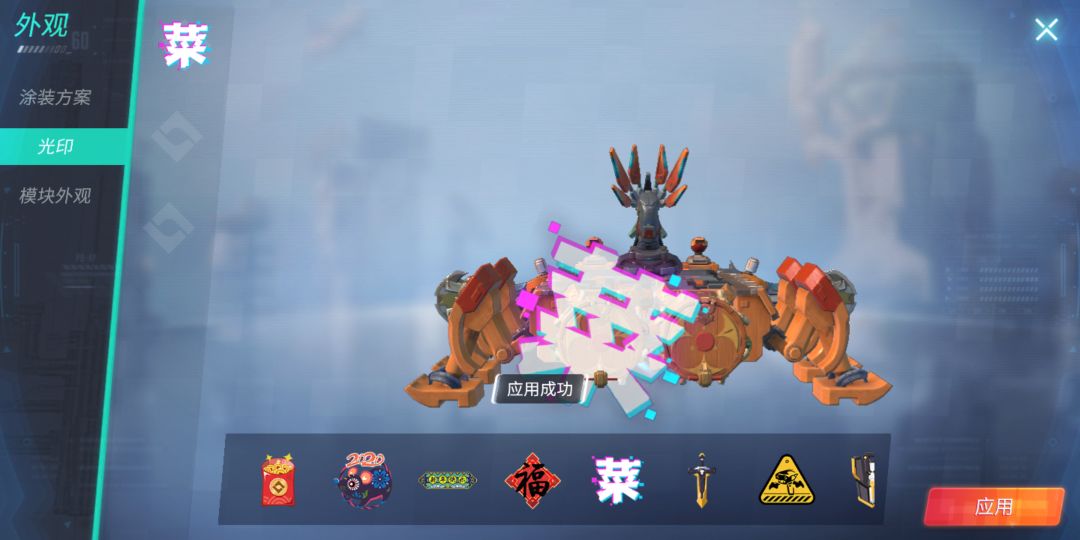 如图 玩了一把之前光印还在,结束了之后光印就没了。在往上装光印就装不上去了,应用成功后,返回选车界面光印又不显示了。