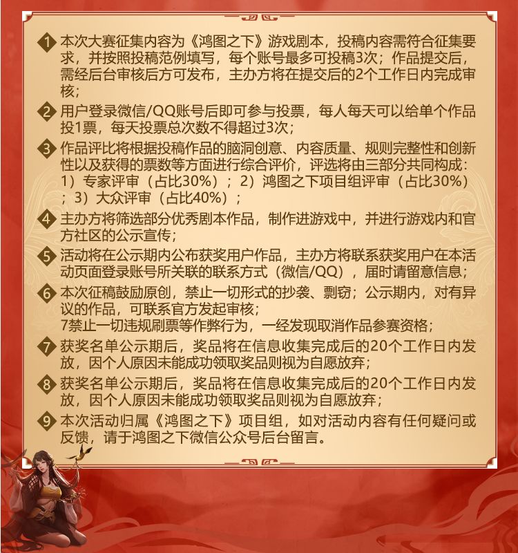 鸿图首届赛季剧本共创大赛即将开启,万元现金奖等你拿!