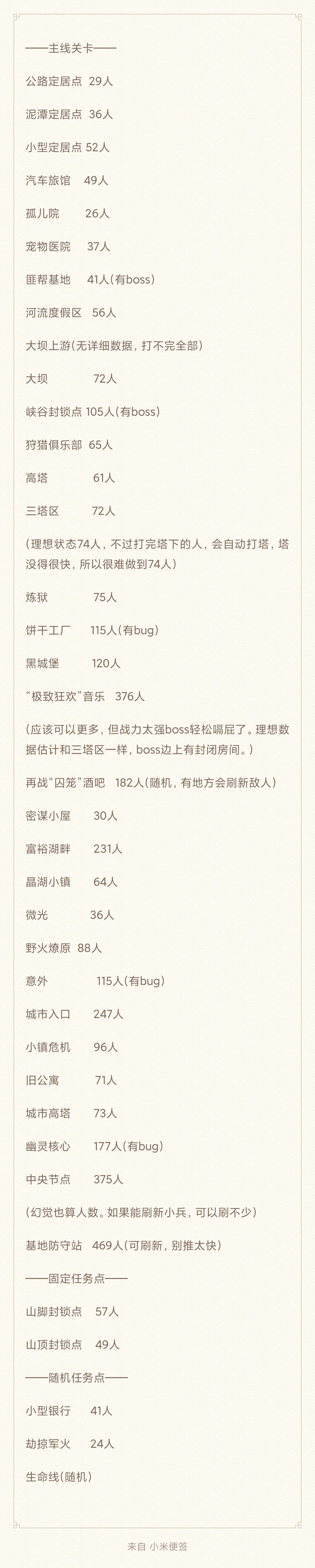 总结各关卡的敌人数量