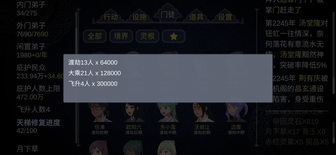 第二、弟子不让结婚(因为结婚后生的孩子灵根控制不了随机的),可以收徒弟,但是收徒弟的时候一定要点击名字查看一下灵根