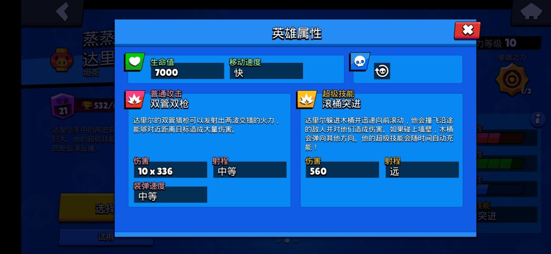 达利尔的普攻打出两波伤害,每次打出五发伤害为336点子弹,结合起来及3360,是荒野目前普攻伤害最强的英雄,三发普攻及10080,能秒黑鸦两次,秒迪克5次。