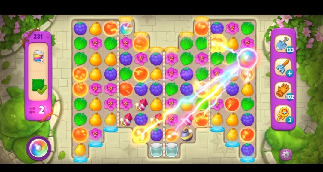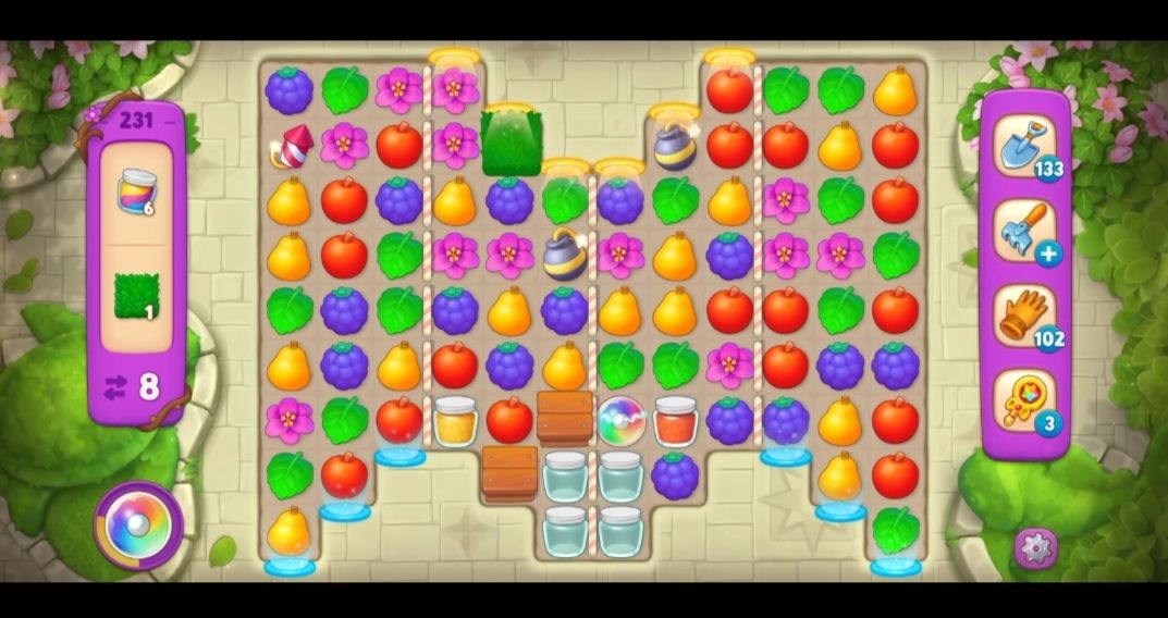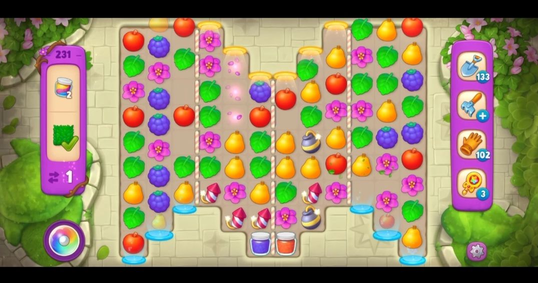 打这样特殊的关卡一定要沉住气,仔细观察各元素之间是否存在连锁效应,用心去感受,用眼去发现。一定要配合好各元素之间的移动位置和各道具之间的特点,来完成关卡目标的收集。