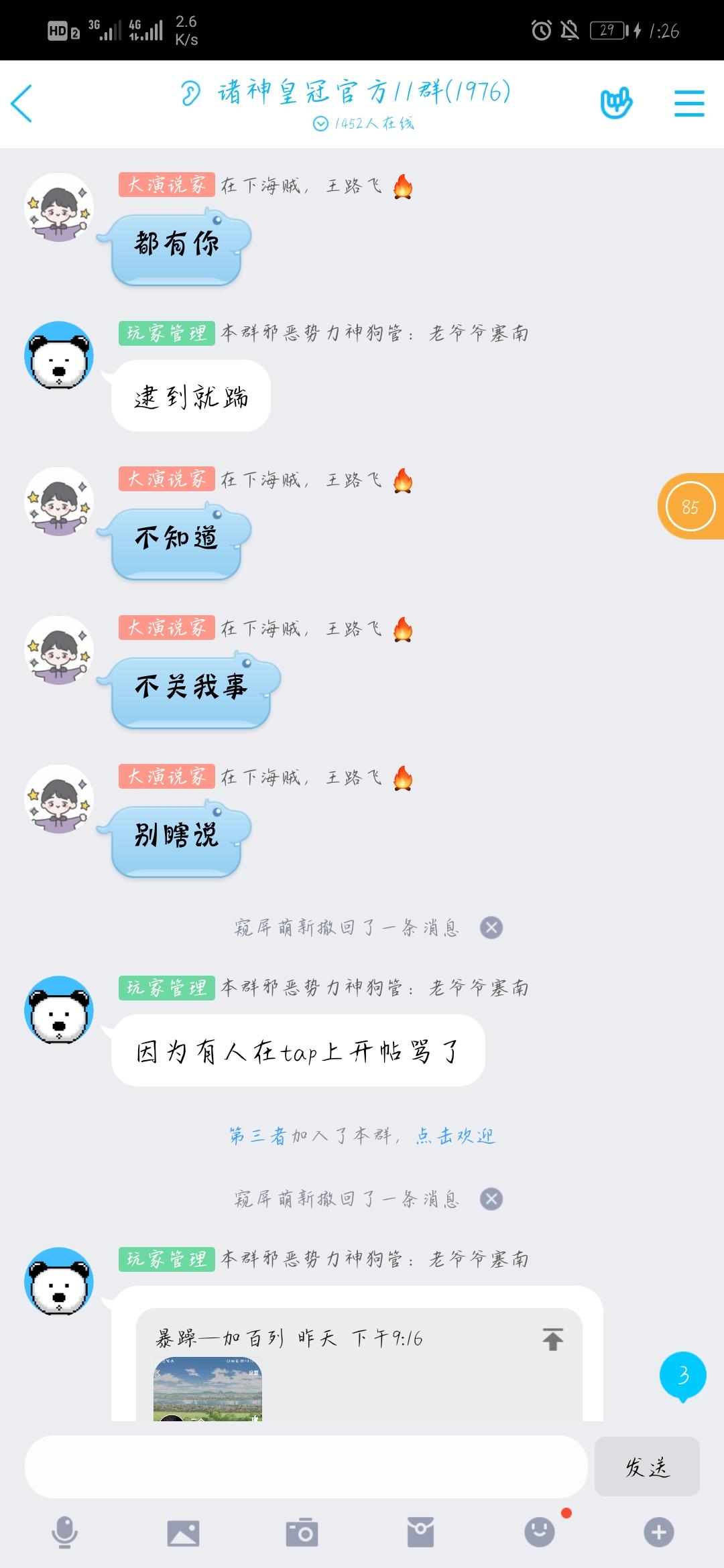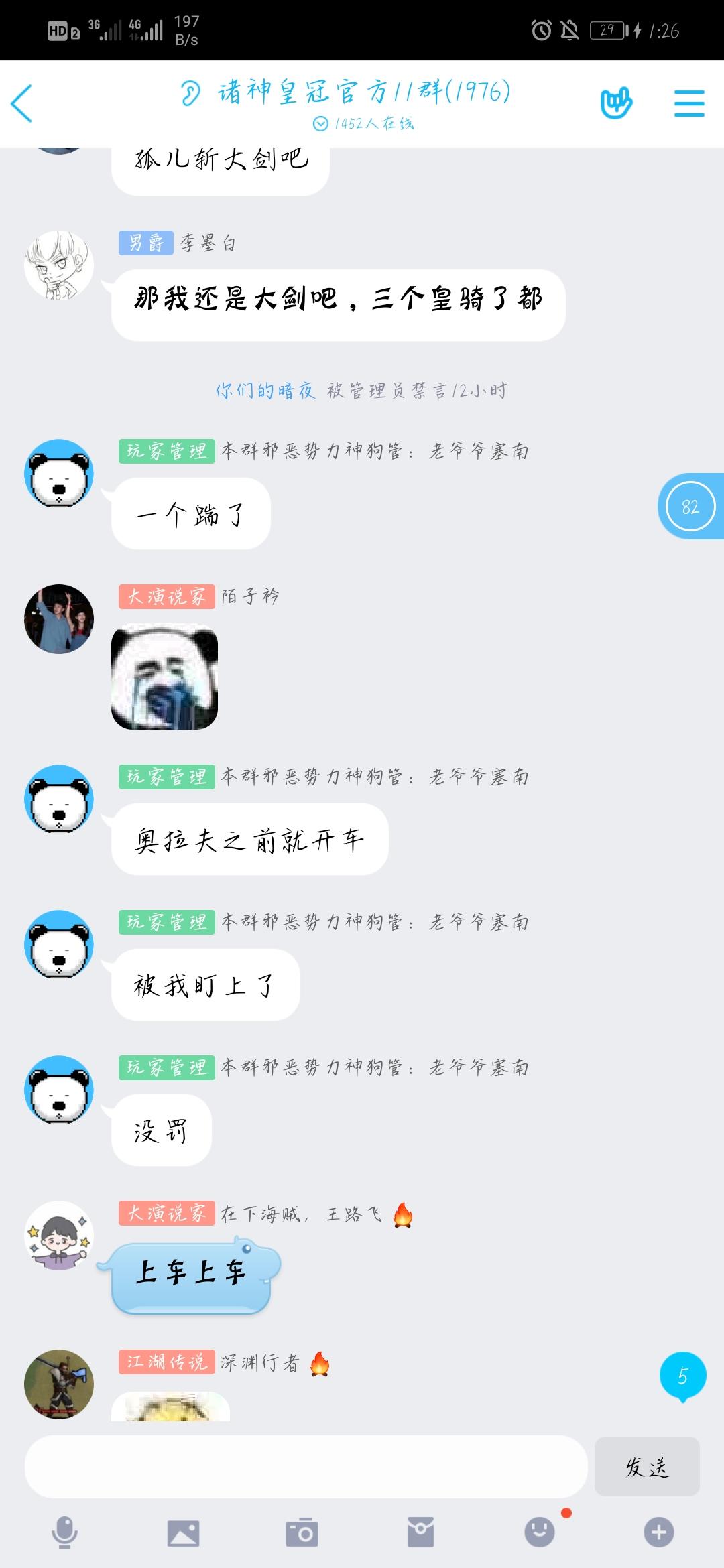 第三 我是不是可以认为 官方群不能聊天 只能打游戏或者问自己不懂得??说我氵群就禁言 我一没刷屏 二没开车 就聊天而已 就禁我言 丹尼尔大人好大的威风 要不以后天天七点多 看谁是龙王 就禁言就好了 原因就是氵群 别问那么多 事实就是这样