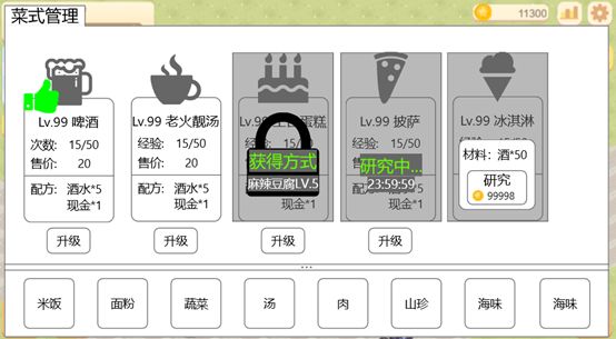 以上便是我们菜谱界面的优化过程,可能会反复尝试,甚至把之前排除的方案再拿回来思考,造成多余的时间消耗。但这就是我们做游戏的常态,不放弃任何一种可能,力求做出效果更好,质量更高的产品,以回报用户对我们的关心。