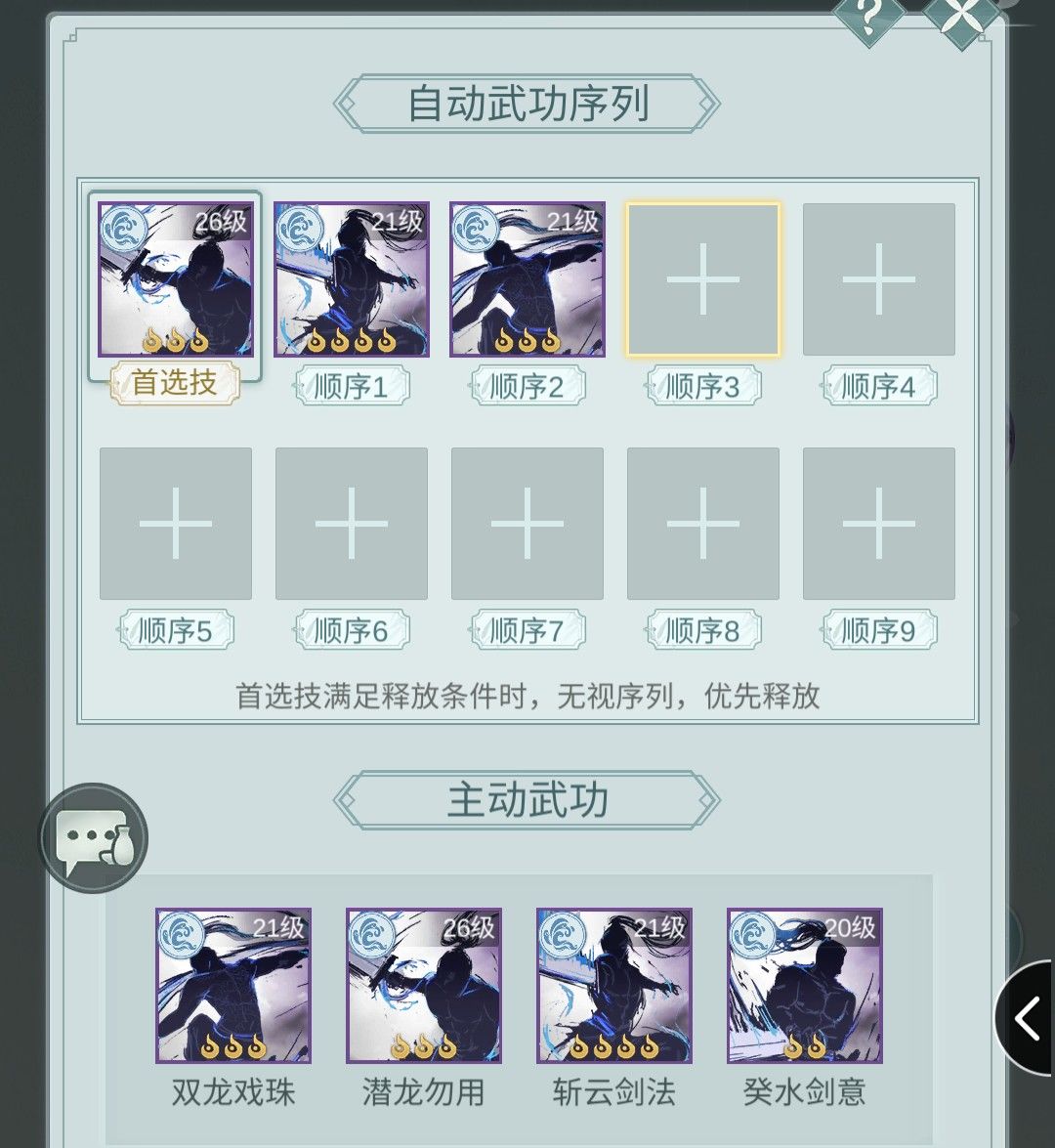 自动时癸水是在第四息起手一共吃到癸水的有:普攻+斩云+潜龙+普攻+斩云(需第一个斩云出暴击)+斩云+普攻,如果爆击多,可直接叠满5层龙啸。并且有三个斩云吃到癸水BUFF,更易加持剑伤BUFF,佩合潜龙打出更多的破定。
