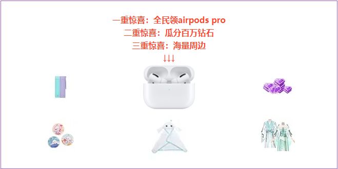 不仅有美美的新衣,还有Airpods pro蓝牙无线耳机(重磅大礼)、66翅膀披肩、66保温杯、防滑垫、楚水之殇服饰单件、海量钻石都有机会通过暴击和击鼓获得!
