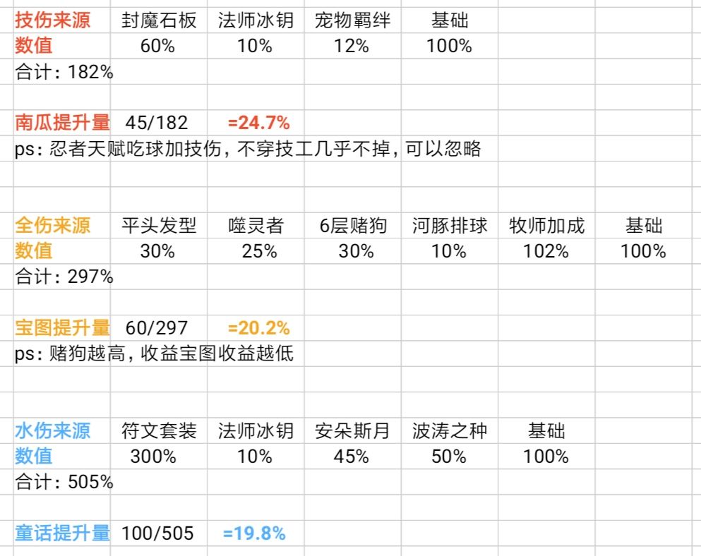 第三把武器我为啥选择南瓜呢,经过组队数值计算如下图: (算的不对的地方请大佬在评论区指出)