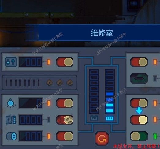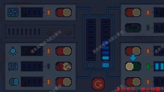 228.向左跑来到四个操纵台这个位置,在这里我们要操作4个启动器,如图调动发电机。228
