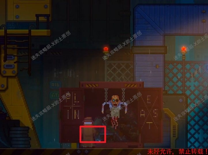 249.这个时候天上掉下一个箱子,我们之后目标就是要打开这个箱子,来到左边的货物堆这个地方,在这里拿到东西。249.1