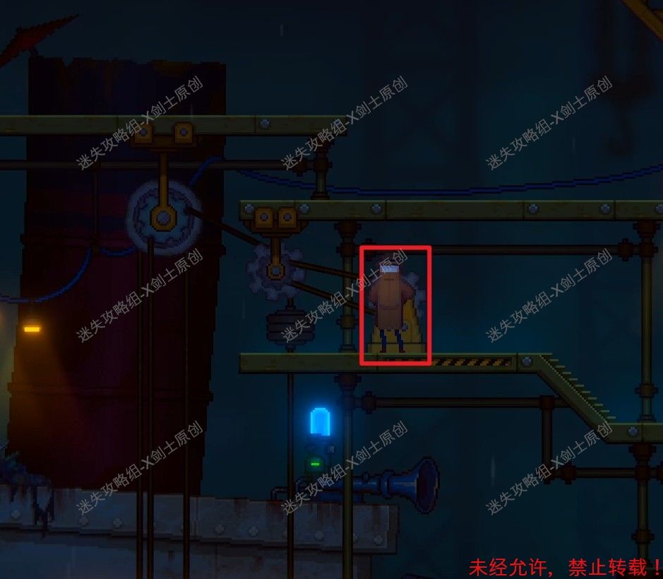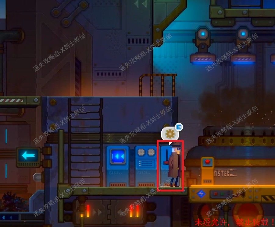 235.接着剧情过后,操作主角爬下楼梯,来到下面之后就会触发剧情,关掉这个传送带,来到左边的位置。235.1