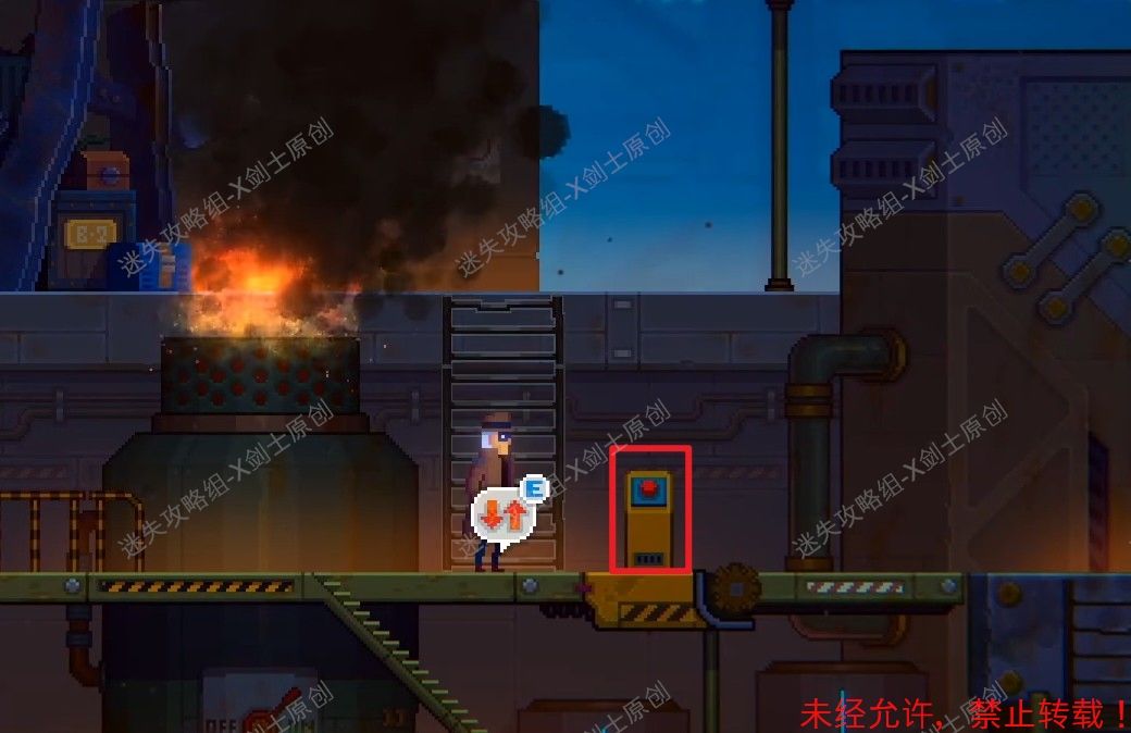 247.道路炸开之后记得把火炉给关掉,关掉之后就可以直接往前走,坐上红色的电梯离开。247.1