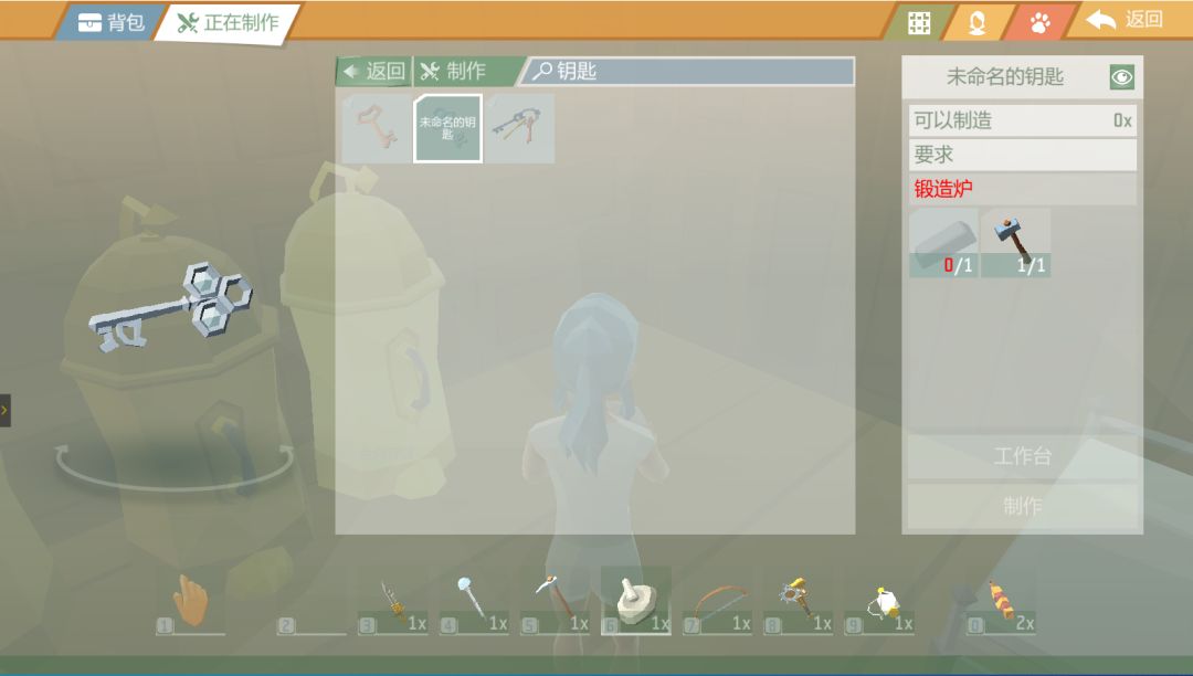 制作一把钥匙所使用的材料也很简单,只需要准备铁锭x1+任意锤子即可,不过要在锻造炉中进行制作哦!