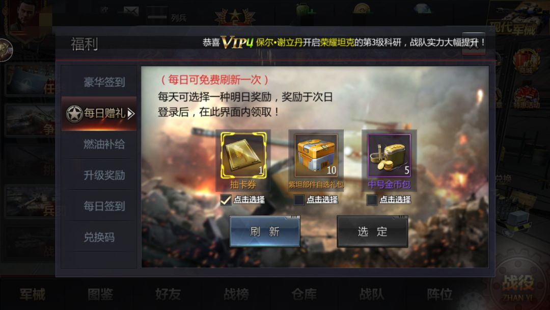 每天可以选择奖励,次日登录可以免费领取。