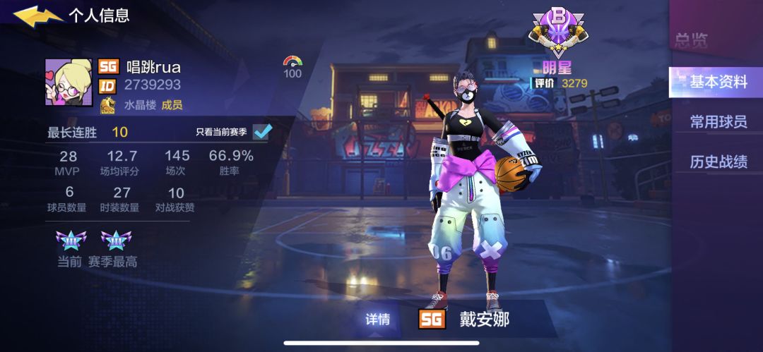 在街篮和自由篮球玩的最多的位置就是pg,玩这个游戏也是,玩的虽然没有多好,但肯定是比我的sg要好的,可这个赛季玩下来,pg上分举步维艰,sg却莫名其妙就上到了明星,胜率也是最高的。